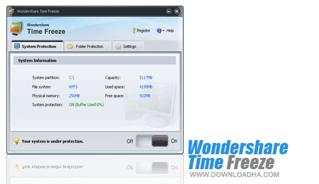 نرم افزار Wondershare Time Freeze ابزاری قدرتمند در زمینه ساخت محیط مجازی برای سیستم می باشد. به سادگی می توانید، برای بازگرداندن سیستم به حالت اولیه تنها رایانه را راه اندازی مجدد کنید. با این برنامه می توانید با استفاده از کار در محیط مجازی سیستم عامل واقعی را در حالت ثابت نگه دارید که باعث جلوگیری از کندتر و کندتر شدن عملکرد کامپیوتر شما با گذشت زمان خواهد شد. این نرم افزار دسترسی دیگران به پوشه های محافظت شده را ممنوع می سازد و امکان هرگونه تغییر در فایل های داخل پوشه های محافظت شده را توسط دیگران از بین می برد.برای دانلود کلیک کنید.